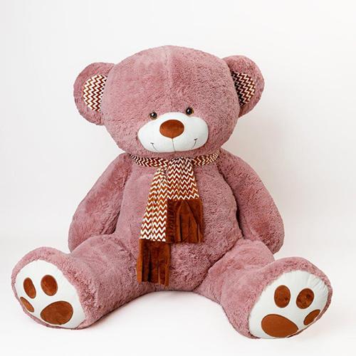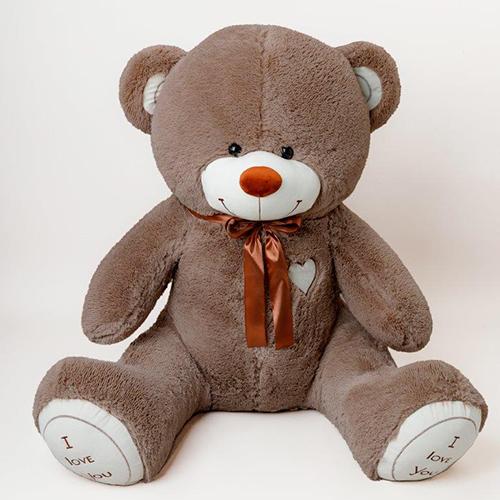 Медведь Кельвин отличается большими и пропорциональными формами – объемный размер мишки составляет 200 см. Для создания мягкой игрушки используется высококачественный мех, а наполнение выполнено из холлофайбера. Декоративная вышивка добавляет уникальности. Для удобства транспортировки медведь вакуумируется, что позволяет сэкономить место. Размеры игрушки: от макушки до хвоста – 110 см, от хвоста до пятки – 90 см, а общая длина составляет 140 см.