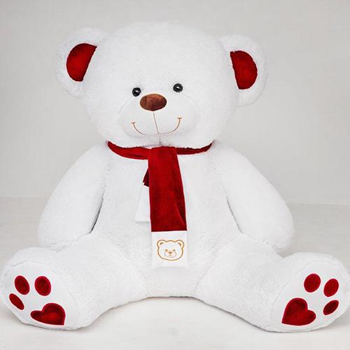 Медведь Кельвин отличается большими и пропорциональными формами – объемный размер мишки составляет 200 см. Для создания мягкой игрушки используется высококачественный мех, а наполнение выполнено из холлофайбера. Декоративная вышивка добавляет уникальности. Для удобства транспортировки медведь вакуумируется, что позволяет сэкономить место. Размеры игрушки: от макушки до хвоста – 110 см, от хвоста до пятки – 90 см, а общая длина составляет 140 см.